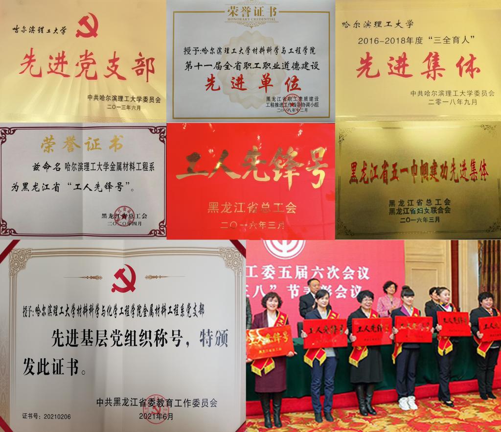 爱党敬业,不忘初心。全院教师忠诚党的教育事业,修身塑行,发扬良好的师德师风传统。学院获中国铸造终身成就奖1人,省师德标兵4人次。近5年,140多人次获得省三大工程创新能手,省优秀共产党员,省先进党务工作者、省优秀教师、省优秀创业导师、省市青年科技奖、市创新争先奖、省五四青年奖章等省级、市级、校级荣誉称号。学院青年志愿者协会获得“黑龙江省志愿服务先进集体”。协会累计在册志愿者920余人,始终秉承着“奉献,友爱,互助,进步”的志愿者精神,坚持量力而行、讲求实效、持之以恒的原则,与哈尔滨市残疾人托养培训中心共建志愿者服务基地,广泛开展敬老、助教、温馨家园爱心帮动、应急救护培训等志愿服务活动近百次,取得了良好的社会反响。