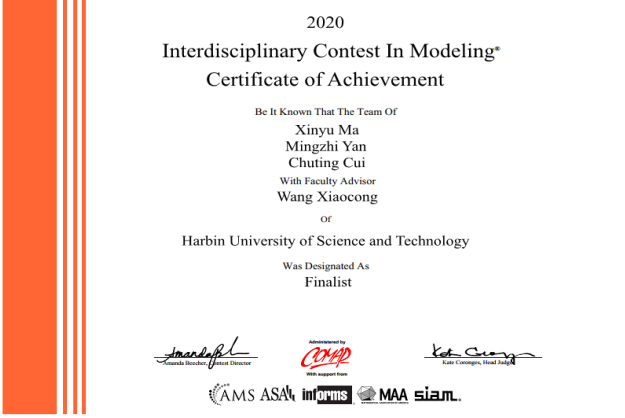 2020年美国数学建模竞赛证书