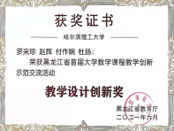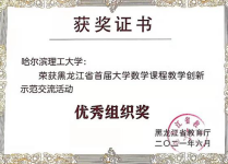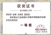 黑龙江省首届大学数学课程教学创新示范交流活动获奖证书