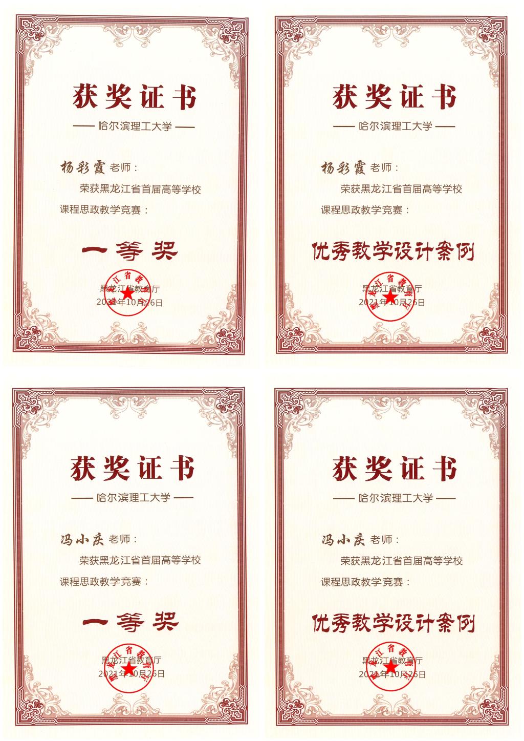《网络化系统控制理论(中英双语)》研究生课程及其团队(胡军、陈东彦、石宇静、武志辉、于浍、陈雯、吕重阳、徐龙)获批首批国家级课程思政示范课程、课程思政教学名师和团队;2个团队入选庆祝建党100周年全省优秀研究生导师团队巡展活动;在全省研究生课程思政高质量建设项目评选活动中,学校大珩研究生课程思政教学研究中心获准立项,为全省6个教学研究中心之一,同时有4门研究生课程思政课程、3个研究生导学思政团队和10项研究生课程思政案例获准立项建设;2名研究生任课教师荣获全省首届高等学校课程思政教学竞赛一等奖和优秀教学设计案例奖。