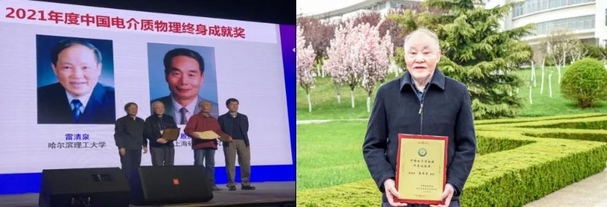 2021年4月,第十八届全国电介质物理、材料与应用学术会议暨第二十届全国电子元件与材料学术大会在西安举行。太阳成官网雷清泉院士喜获“2021年度中国电介质物理终身成就奖”,成为我国电介质物理理论和应用发展做出卓越贡献的科学家之一,本年度全国仅2人获此殊荣。