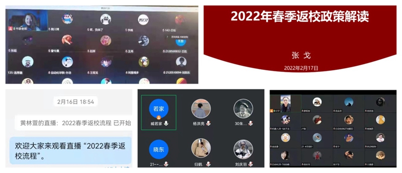 为确保学生返校工作有序推进,自动化学院开学前召开了学生返校工作线上布置会,对2022年春季学期学生返校工作进行部署。会后辅导员对学生情况的进行了精准摸排,全面掌握学生假期动向、身体状况等重要信息,做到一人一档,以班级为单位向每位学生及家长详细说明了返校流程和注意事项,并提醒学生返校前14天务必坚持每日钉钉健康打卡。