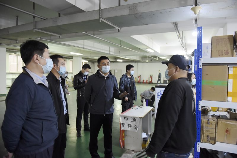 校领导在校园快递中心,检查学生分批次进入大厅及排队扫码情况,详细了解快递从进校到发放学生手中的全流程操作。校领导要求校园快递中心一定要按照流程要求把每一个环节落细落实,一定要规范操作、全面覆盖,坚决把牢快递安全关。