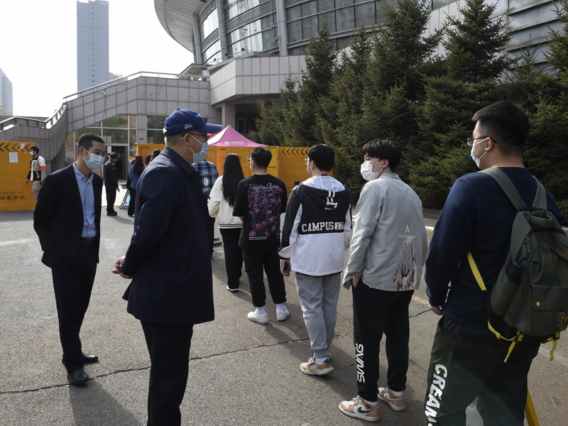 校领导与核酸检测区工作人员交流