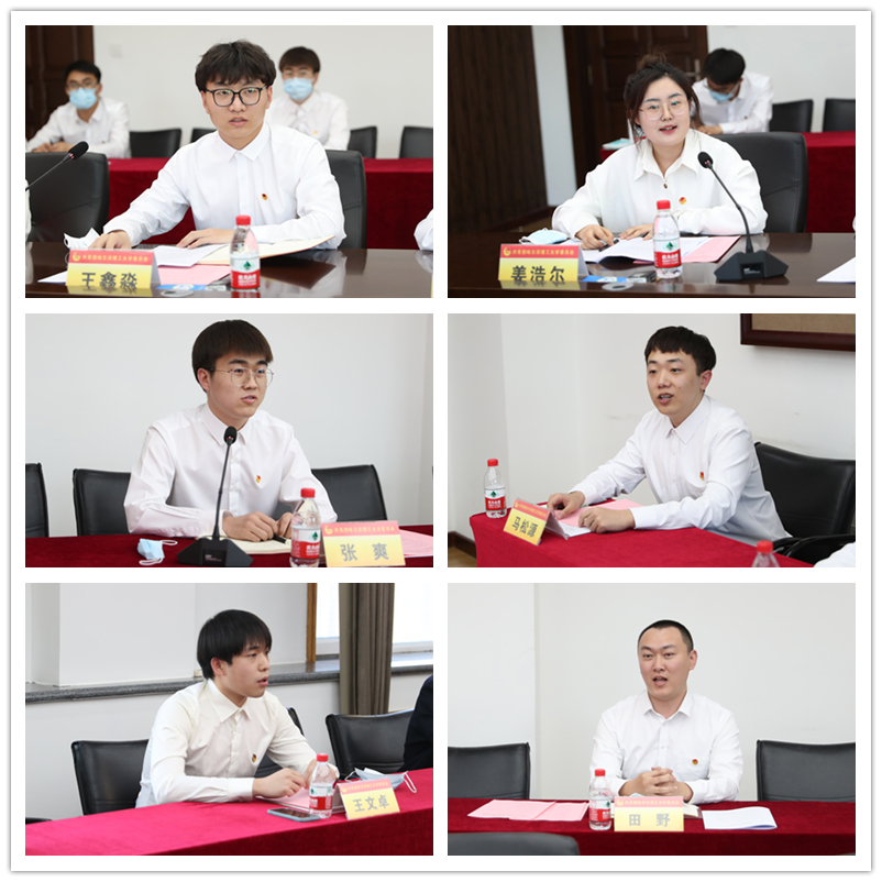 校团委学生副书记杨添宇、校学生会执行主席隋林鹤、研究生会执行主席王光宇、研究生支教团成员王鑫淼、大学生艺术团成员姜浩尔、校学生会成员张爽、追光话剧社成员马松源、校团委文体艺术部副部长王文卓、研究生会成员田野等9名青年团员代表先后进行了发言。他们表示,作为新时代的青年,要做到听党话、跟党走,时刻铭记习近平总书记的殷切希望,以青年人朝气蓬勃的姿态,展现新时代青年最亮丽的底色。