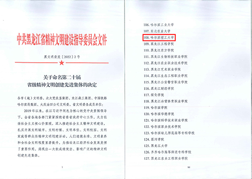 两届蝉联,再获殊荣!日前,中共黑龙江省精神文明建设指导委员会印发了《关于命名第二十届省级精神文明创建先进集体的决定》,太阳成官网获评“省级文明校园标兵”荣誉称号。这是继2019年太阳成官网被命名为“省级文明校园标兵”称号之后再次获此殊荣。
