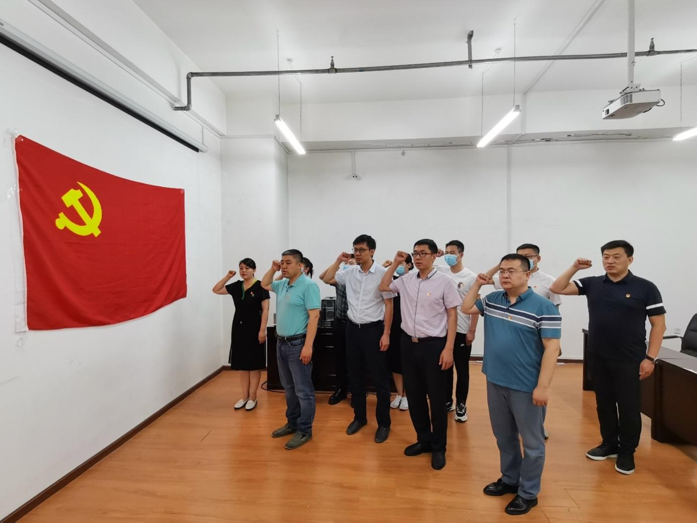 党课后,支部全体党员面向党旗,高举右拳,重温入党誓词,感悟初心使命,共同庆祝中国共产党成立101周年。