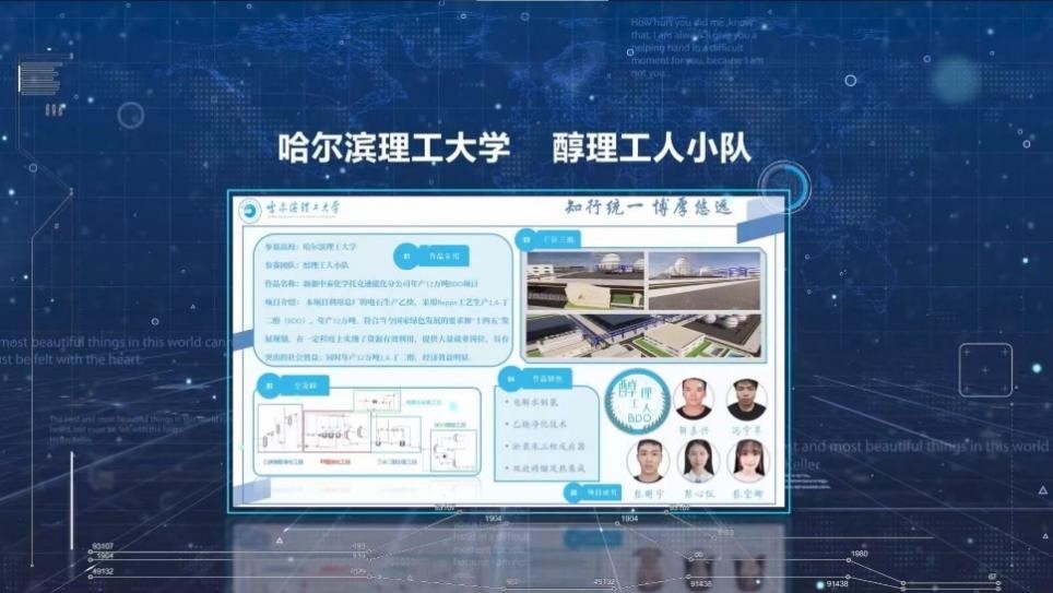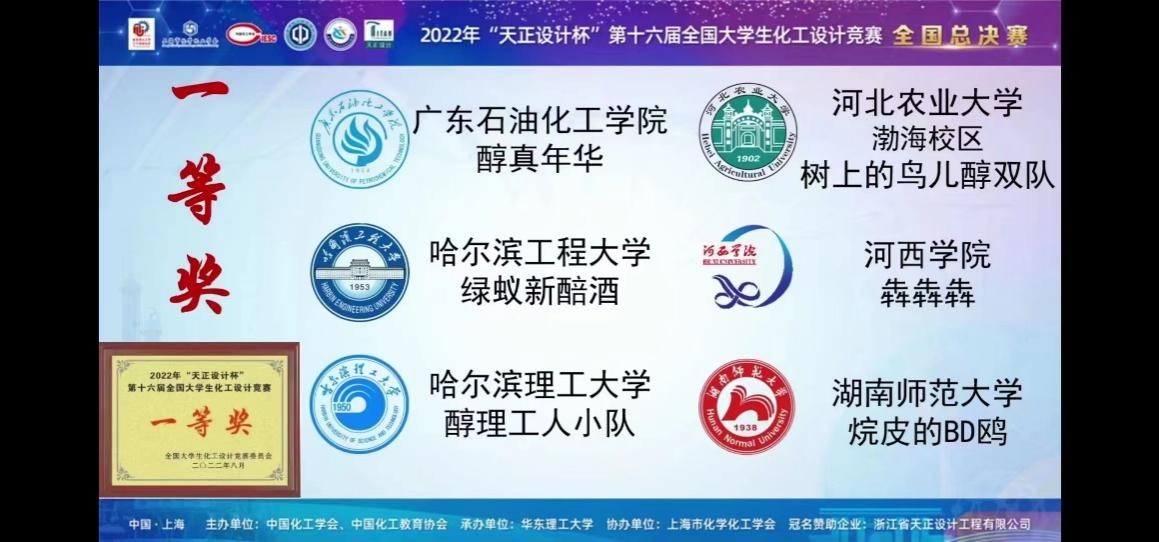 指导教师和参赛学生再接再厉,对参赛作品不断完善和打磨,“醇理工人小队”在东北赛区区赛中杀出重围,再次以优异的成绩获得区赛特等奖,与大连理工、哈工程等4所高校代表东北赛区挺进全国总决赛。在总决赛中,“醇理工人小队”与来自全国7大赛区的60支队伍决战,对手包括来自浙江大学、天津大学、华东理工、大连理工等具有较强化工特色的参赛队伍,“醇理工人小队”凭借优秀的设计方案和出色的演讲与答辩,最终获得全国一等奖。