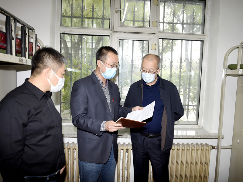 校领导在校内隔离点检查并部署相关工作