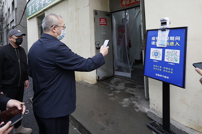 校领导在师生超市了解物资储备及食品安全情况