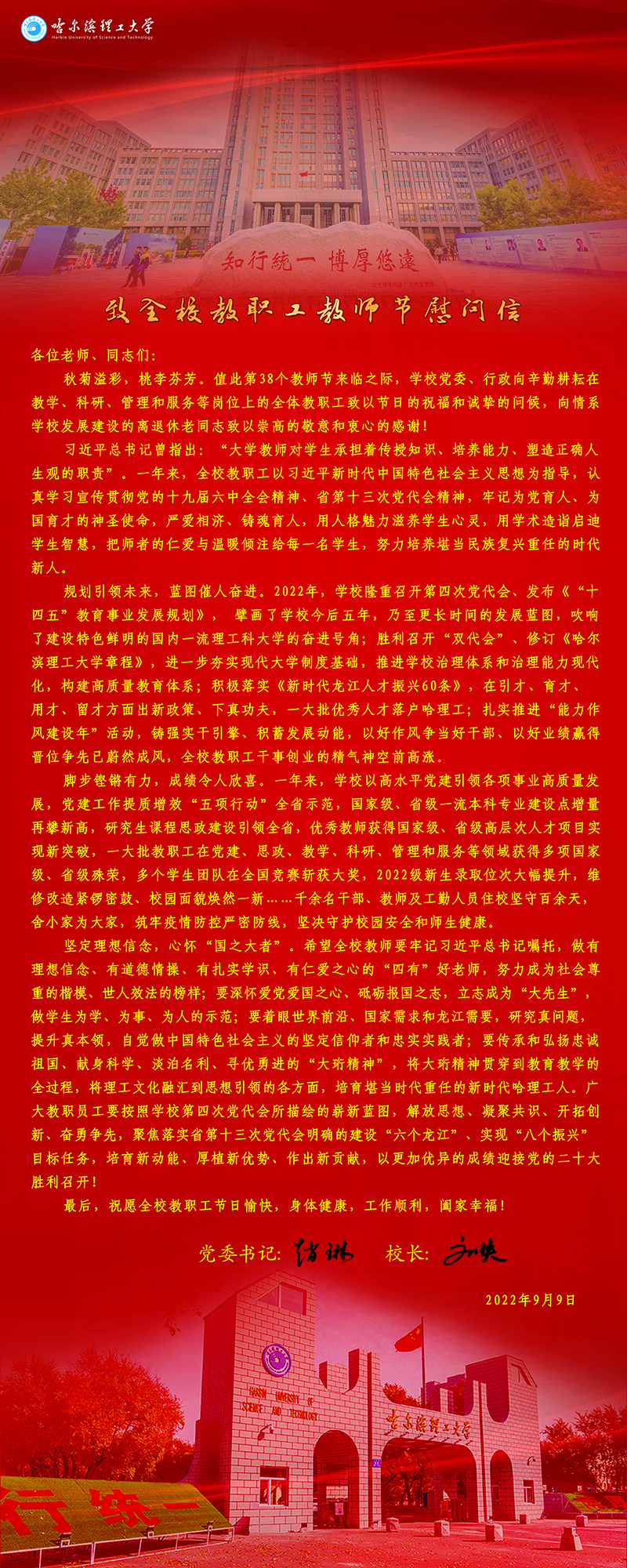 学校领导致全校教职工教师节慰问信
