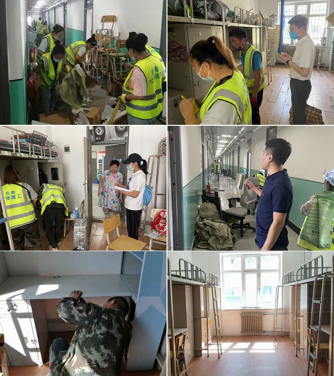 各项施工的顺利开展也离不开学校其他单位的联动聚合,通力协作,在为学生寝室更换地板期间,室内个人物品归纳整理是每个施工人员最为头疼的事,为此党委学生工作部组织相关学院的党委副书记和辅导员,牺牲宝贵假期,与后勤施工人员共同为学生打包整理物品,经过60多人的共同努力,仅用7天就完成802个寝室学生物品打包整理工作,为工程顺利实施素清障碍,也完美展现了理工人攥指成拳打合力,凝心聚力解难题的协作精神。