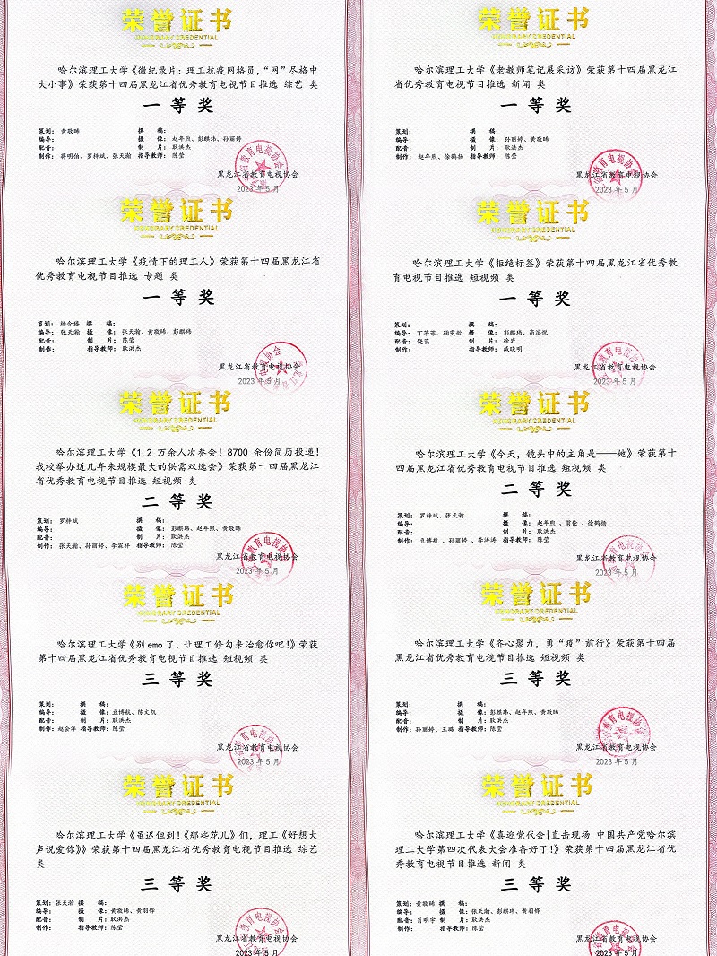 会议宣布了第十四届黑龙江省优秀教育电视节目评比结果,并对各类优秀教育电视节目进行表彰。太阳成官网学子参赛的十部作品全部获奖,其中,荣获一等奖四项,二等奖两项,三等奖四项。