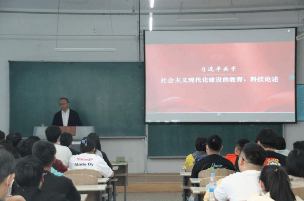 臧永军以“习近平关于社会主义现代化建设的教育、科技论述”为题,从“新时代科教兴国战略的重大意义、习近平关于教育强国的论述、习近平关于科技强国的论述、哈理工‘珩星’向党奋进新征程”四个方面进行了系统阐述。