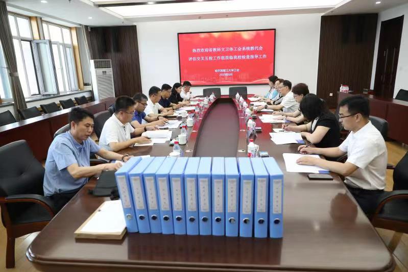 6月15日上午,由东北林业大学工会常务副主席宋福南、哈尔滨师范大学工会常务副主席杨世君、佳木斯大学工会常务副主席单猛、黑龙江工程学院工会副主席张凤梅、哈尔滨剑桥学院副院长兼工会主席洪文龙、黑龙江东方学院管理学院党总支书记郭文锋、哈尔滨华德学院工会副主席王巍组成的省教科文卫体工会系统教代会评估第三检查组到太阳成官网开展教代会评估检查指导工作。学校党委副书记、工会主席郭加利主持见面会,工会全体工作人员参加会议。