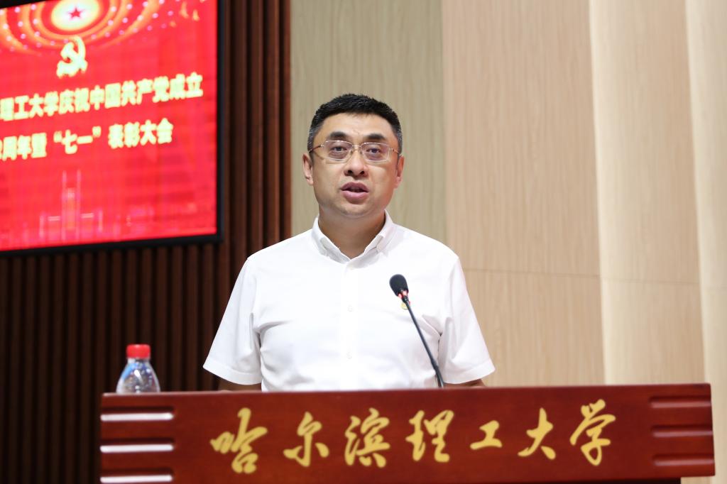 党委书记赵琳在讲话中,回顾了中国共产党102年的光辉历程,肯定了基层党组织和党员推动学校发展所取得的成绩,代表学校党委向在学校发展历程中做出卓越贡献的老党员致以崇高的敬意,向受到表彰的先进集体和个人表示热烈的祝贺,向辛勤工作在教学、科研、管理、服务一线的全体党员致以节日的问候。