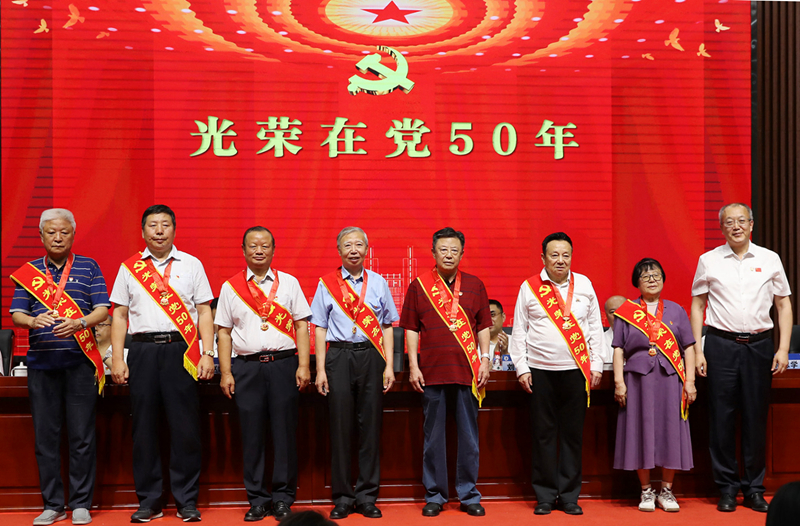 党委书记赵琳为“光荣在党50年”老党员代表颁发纪念章