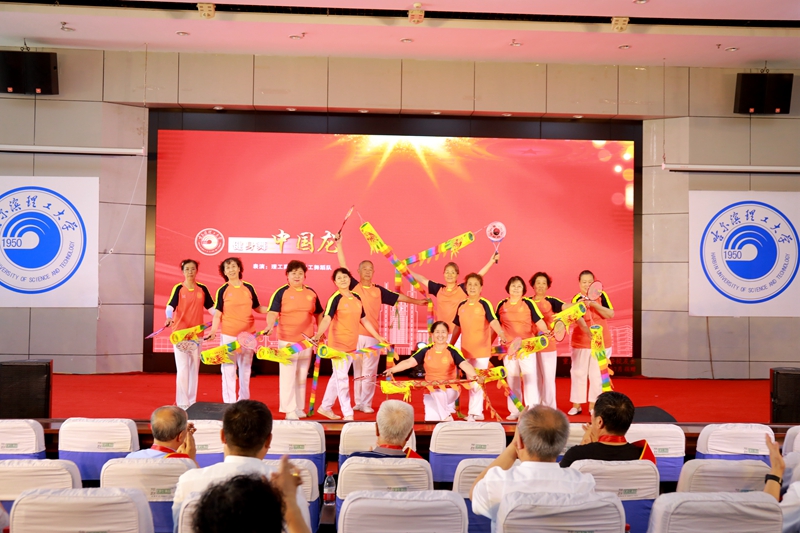 整场演出形式多样,内容丰富,《中国龙》健身舞表演拉开了本次演出的序幕。离退休教职工乐队的红歌联奏《歌唱祖国、我们走在大路上、人民军队忠于党》节奏铿锵;老年学院声乐一班《党啊!亲爱的妈妈》饱含深情;老年学院舞蹈队的朝鲜舞《长鼓咚咚敲起来》姿态翩跹;老年学院声乐二班《我和我的祖国》娓娓动听;老年学院柔力球队《花开的时候》赏心悦目;独唱《再见了大别山》慷慨激昂;小提琴重奏《我爱你中国》乐声悠扬;文艺汇演在老年学院声乐三班《复兴的力量》的歌声中达到高潮。