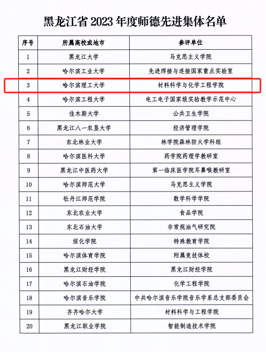 2023年度全省师德先进集体——材料科学与化学工程学院