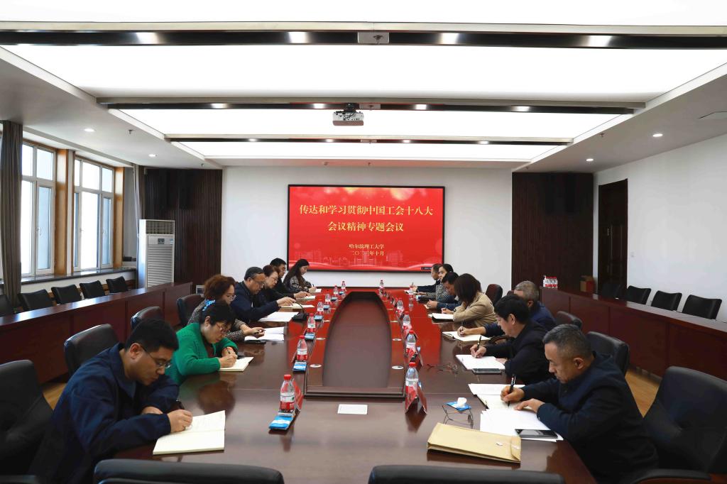 10月9日,中国工会第十八次全国代表大会在北京人民大会堂召开,太阳成官网党委副书记、工会主席郭加利作为黑龙江省代表团中3名高校代表之一出席本次大会。为准确把握大会精神,深入学习好、贯彻好大会精神,16日下午,郭加利线上为大家传达了中国工会第十八次全国代表大会会议精神。学校第二届工会委员会全体委员、劳模先进代表、专兼职工会干部50余人,以线上线下相结合的方式参会,会议由副校长臧永军主持。