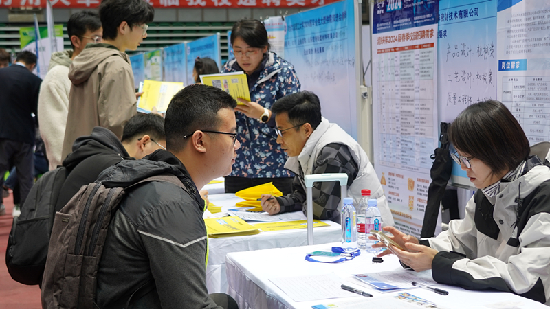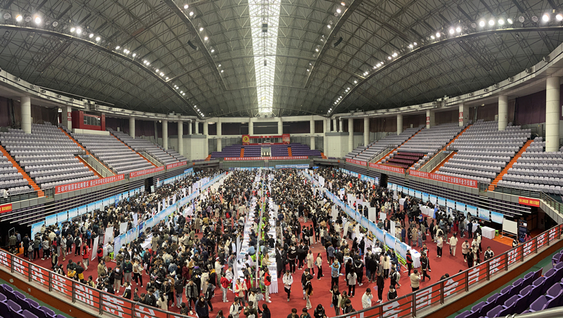 各学院书记、院长、党委副书记、学科专业负责人及就业干事、毕业班辅导员均深入招聘会现场,主动对接用人单位,了解行业市场需求,精准推荐毕业生,邀请用人单位召开专场宣讲,对接部分企业洽谈在“产、学、研”方面深度合作事宜。本次双选会,就业部门精心筹备,宣传部、团委、教务处、研究生处、国有资产管理处、保卫处、后勤管理处、网络信息中心、国家大学科技园管理办公室等相关部门密切配合、大力支持。招聘会现场设置了就业服务站,包括就业政策解读、简历诊断、面试安排、协议书打印、签约审核、医疗服务等功能,还设置了应征入伍咨询站、“石榴籽”工作室服务区。现场还有120余名来自校青年志愿者协会和各学院的“红马甲”学生志愿者“包干包片”为用人单位和毕业生随时提供暖心服务。招聘会现场人头攒动、秩序井然。