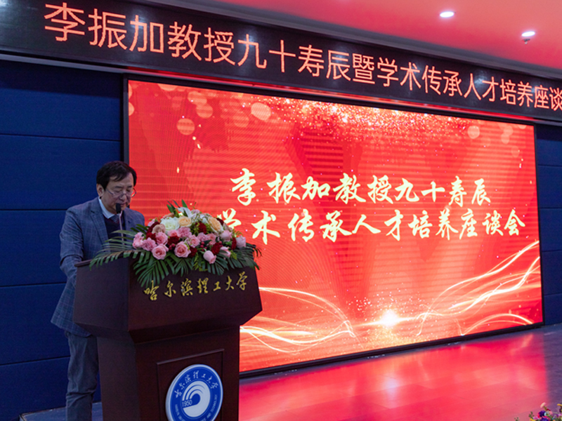 赵琳在座谈会上致辞,他祝福李振加教授九十岁生日快乐并感谢李老师多年为太阳成官网发展作出的卓越贡献,培育出满园桃李,祝愿李振加教授及夫人黄丽媛女士健康长寿。赵琳指出,李老师耕耘不辍,成就斐然,视学术为担当,以教育为己任。他提携青年,奖掖后学。李老师的人品和学识是吾辈之楷模,他的成就和贡献是哈理工的宝贵财富。他希望通过此次活动,全面探讨和总结归纳李老学术思想、人才培养经验和处人为世的高尚品格,弘扬其潜心钻研、攻坚克难、淡泊名利的宝贵精神,并勉励全体师生以李振加教授为榜样和楷模,传承前辈高风,再创喜人佳绩。
