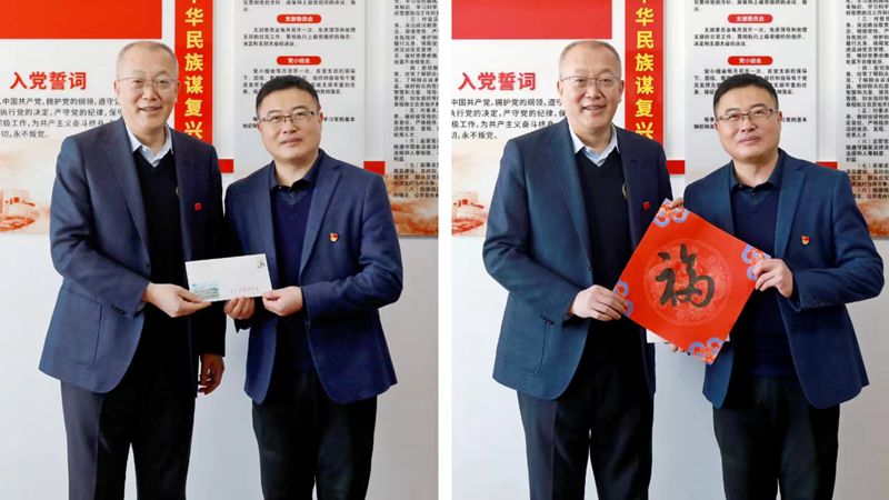 赵琳书记向冯宇教授送上慰问金和“福”字