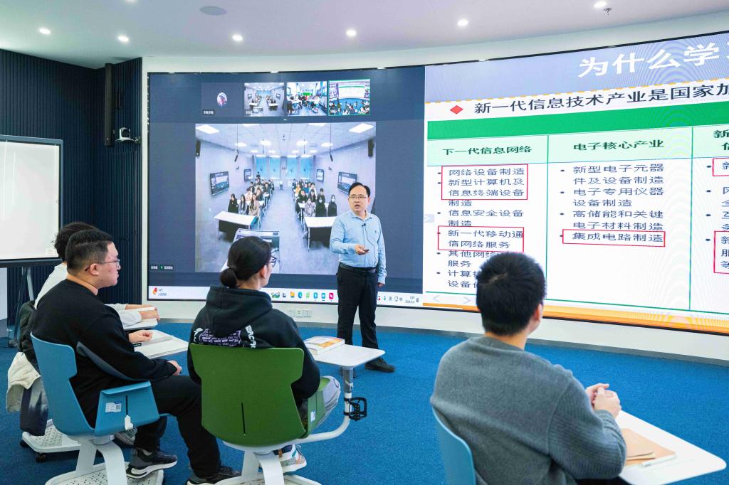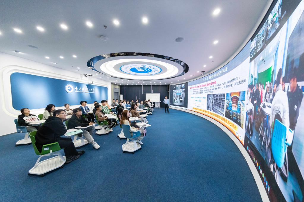 3月4日上午8:10,省级一流课程负责人、计算机科学与技术学院姚登举教授,在西区教学主楼五楼智慧校园一体化空间(D507)现场讲授操作系统导论课,利用信息化技术和手段,以线下线上融合、远程直播互动的方式,为西区、南区及荣成校区百余名学生,奉献了新学期第一堂别开生面的公开课,实现了一校两地三区同上一堂课、同享名师名课教学资源。