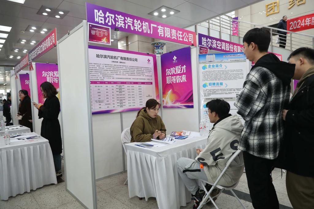 本次双选会以“‘尔滨’爱才‘职’等你来”为主题,市工信局从市总工会、道外区、平房区报名企业中,按理工类人才专业设置、才需匹配,优选现场入场企业43家,入场企业、不入场企业共提供岗位411个,招才需求2420名。会场设有直播带岗专区,直播带岗流量峰值3.6万人次,1000余名毕业生参加了双选会,累计投递简历968份,实现了岗位精准供给、求职招聘精准对接。(摄影:耿洪杰)