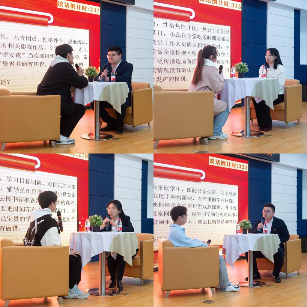 大赛分为初赛和复赛两个阶段,经过初赛的业务考试、学生信息辨识环节,20名辅导员成功晋级决赛。决赛分为谈心谈话和案例研讨两个环节。