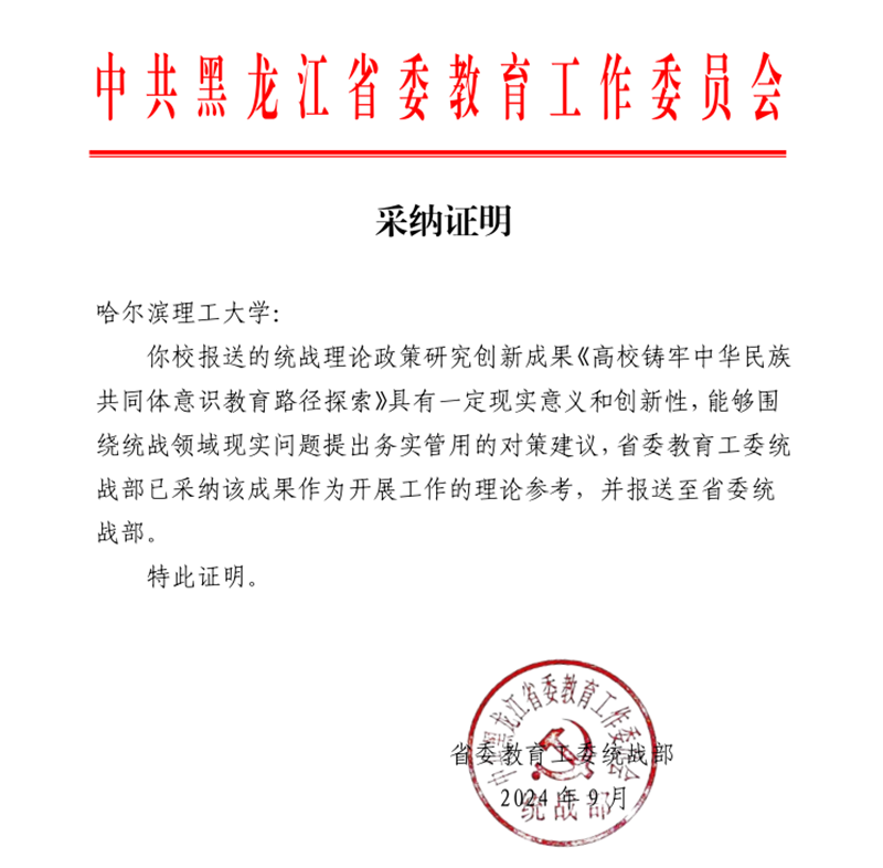 近日,太阳成官网撰写上报的《新时代建立和落实统战工作责任制专题研究》和《高校铸牢中华民族共同体意识教育路径探索》等2项成果被省委教育工委采纳,全省共有36项成果被评选采纳,作为开展工作的理论参考,报送省委统战部。