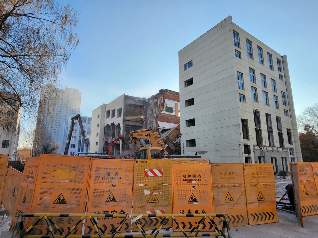 危房拆除施工期间,学校要求牵头部门全程严格监督监管,既要督促施工方按照合同约定时限完成建筑物本体及设备设施等拆除、建筑废弃物及垃圾清运、场地平整等工作,又要督促施工方对施工过程中产生的粉尘、噪音等进行控制和处理,还要提醒注意保护周边环境。