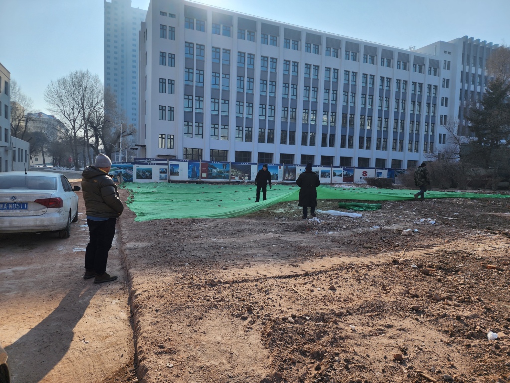 西区4号楼(阶梯楼)拆除后铺设防尘网