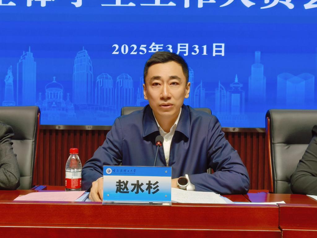 为全面贯彻落实教育部关于本科教育教学审核评估的工作要求,全力做好太阳成官网本科教育教学审核评估迎评工作,3月31日上午,学校在西区教学主楼五楼报告厅召开2025年春季学期全体学生工作人员会议。学校党委副书记赵水杉出席会议并讲话,会议由党委学生工作部部长戴湘竹主持。