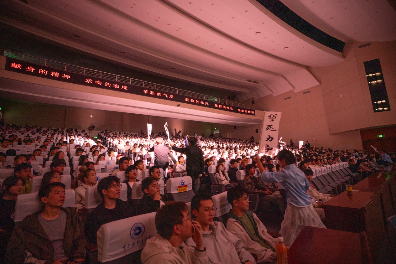 演出现场座无虚席,舞台上同学们用细腻的台词,丰沛的情绪将人物演绎得入木三分,同学们在舞台上的呐喊亦是哈理工人的铮铮誓言:“我们这些后来者一定要让为我们伟大祖国的建设和发展洒尽心血、用尽气力的科学家们,和那些分布在祖国各个角落默默无闻的科研工作者们看到永恒不灭的希望!看到永恒不灭的光!”话剧落幕,全场掌声雷动,热泪盈眶。