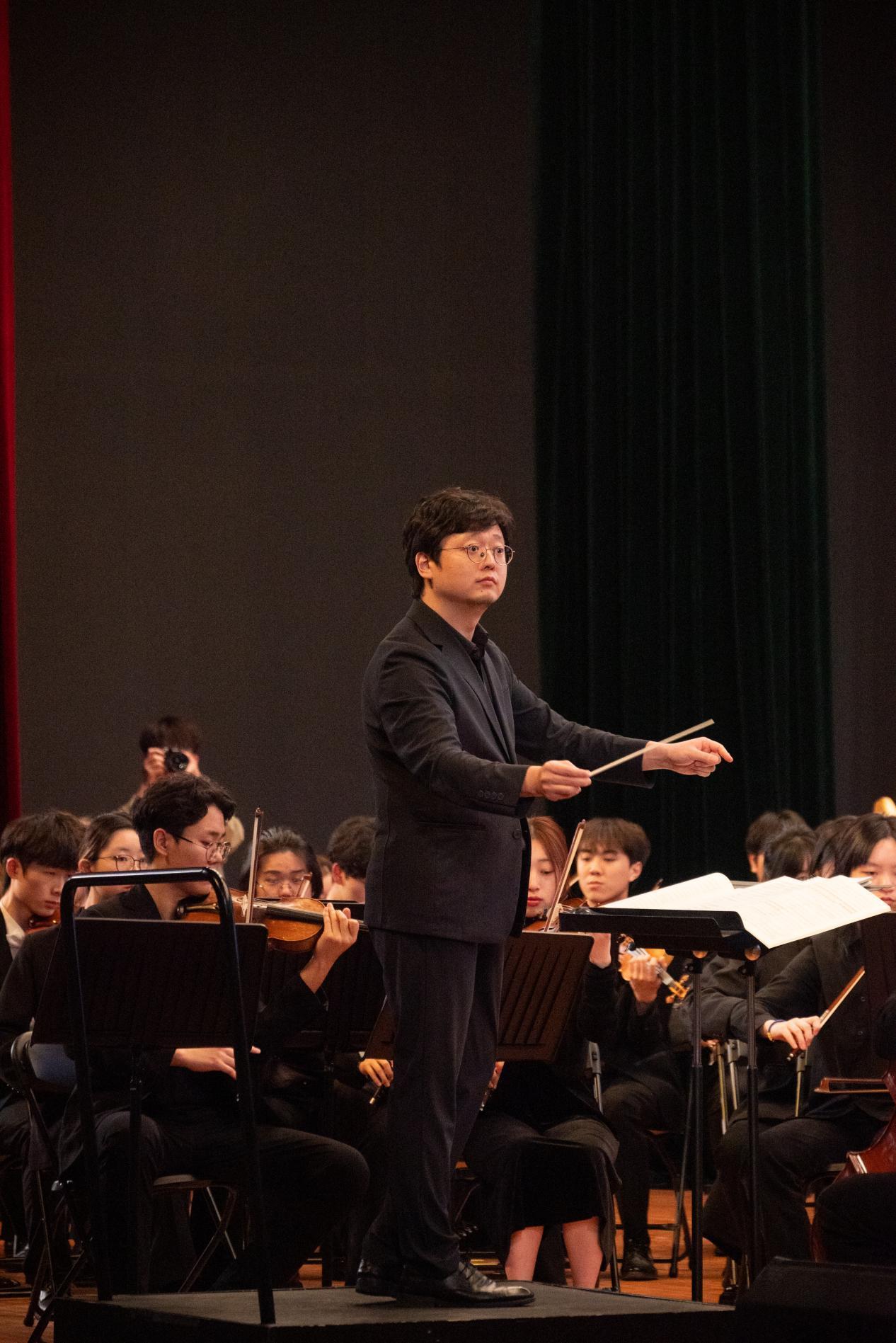 本场音乐会精心编排了五首经典交响曲目,既有西方交响名曲的恢宏演绎,也有融合民族音乐元素的创新之作,为现场观众带来了一场视听盛宴。《红旗颂》描绘了人民在革命胜利后高举红旗的景象,抒发了对胜利的喜悦与红旗的赞颂;小提琴协奏曲《梁山伯与祝英台》选段“化蝶”以流畅优美的旋律,将梁山伯与祝英台的爱情故事娓娓道来;《炎黄风情》组曲选段“太阳出来喜洋洋”带领我们走进充满生机的华夏大地,领略不同地区人民丰富多元的生活;《波莱罗》舞曲通过复杂的拍子变换和独特的节奏组合,呈现出热烈、活泼的氛围;《第五交响曲“革命”》第四乐章表现出人民群众经过斗争终于获得胜利的无比欢乐,最终以光明的彻底胜利而告终。演出过程中,音乐会指挥林劲松以深入浅出的方式向观众普及交响乐知识,带领大家领略交响艺术的独特魅力。激昂的旋律与细腻的情感交织,赢得了阵阵热烈掌声。