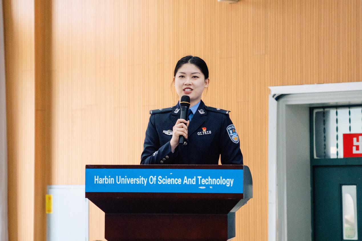 哈尔滨市公安局南岗分局新型犯罪侦查大队反电诈宣讲员周禹含通过剖析“校园贷诈骗”“冒充公检法”等典型案例,深入浅出讲解了当前电信网络诈骗的新手法、新特点。同时提醒学生们用好“国家反诈中心”APP并关闭境外来电、守护自身财产安全。龙江银行总行内控合规部宣讲员张智源从专业角度,系统讲解了非法集资的识别方法和防范技巧。与会师生认真聆听了来自公安系统和金融领域的专题报告,现场学习氛围浓厚。宣讲过程中穿插互动问答环节,学生踊跃参与,现场气氛热烈。