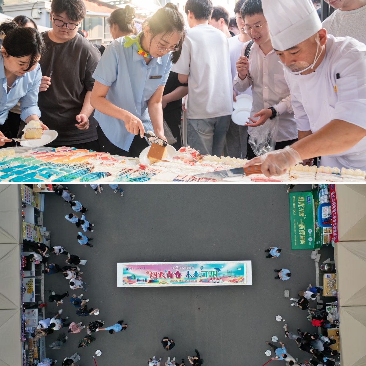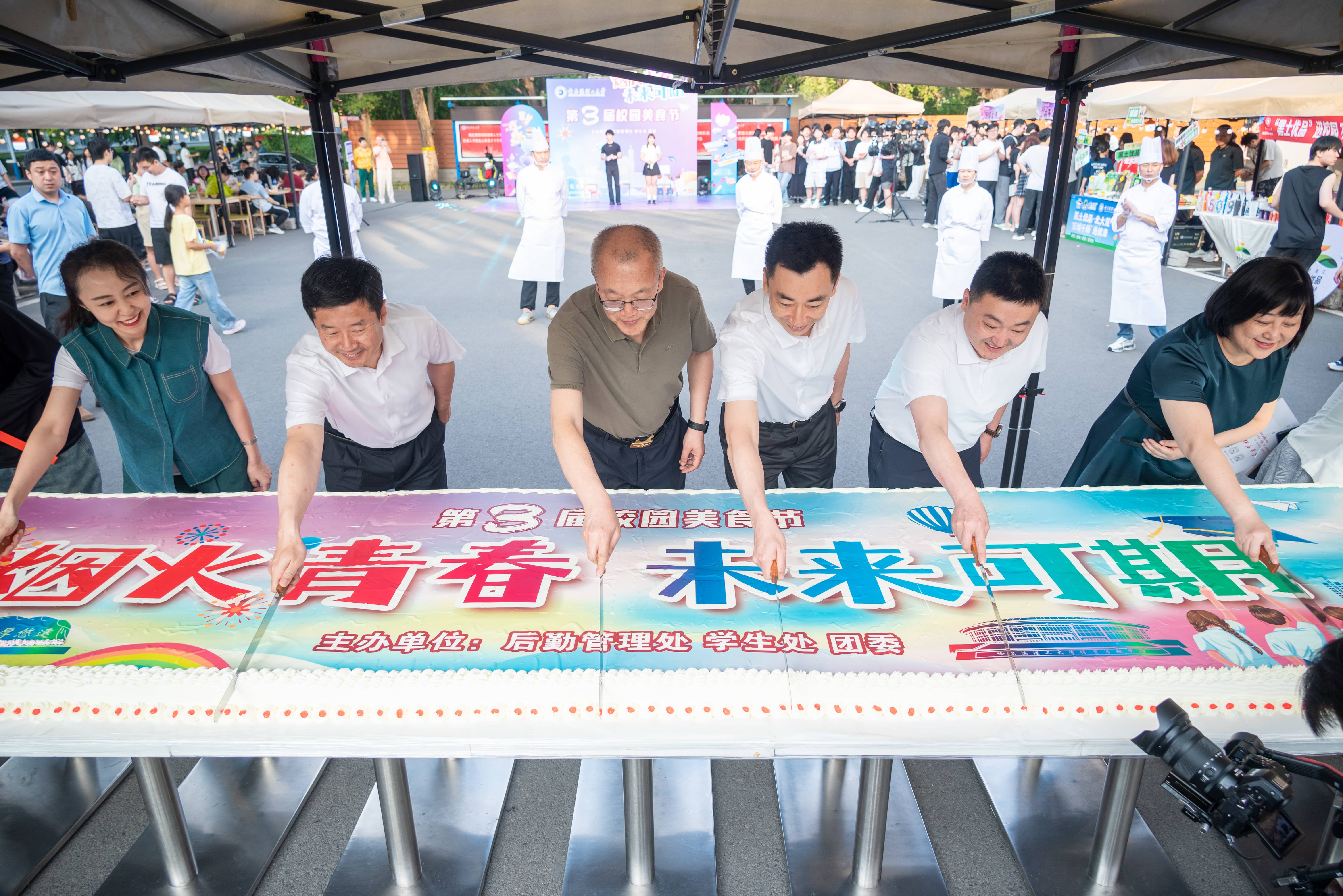 本届美食节恰逢毕业季,承载着学校对即将远行学子的深深眷恋与美好祝福,后勤人怀着“舍不得”“放不下”的深情厚谊,响亮地喊出“再为学子们做一次暖心饭”的心声。活动现场特别设置了深受毕业生喜爱的“6米超长毕业主题蛋糕”专区,以校园标志性建筑为设计元素,象征毕业生甜蜜的大学生活,学校领导、老师和同学们共同切开蛋糕,寓意着母校对毕业生开启人生新甜蜜篇章的殷切祝福;精心准备的7000份毕业饺子,承载着学校的牵挂和说不尽的叮咛,为即将远行的学子准备的祝福家宴;以理工四季为主题背景,以春夏秋冬为特色口味,限量制作500盒“打包未来—毕业季限定甜品罐”,将四季青春和母校甜蜜一起打包,每一帧场景都值得记忆,每一口香甜都值得回味;600块精心制作的纸杯蛋糕承载着丰富多彩的青春岁月,饱含着学校的无限深情与甜蜜祝福。