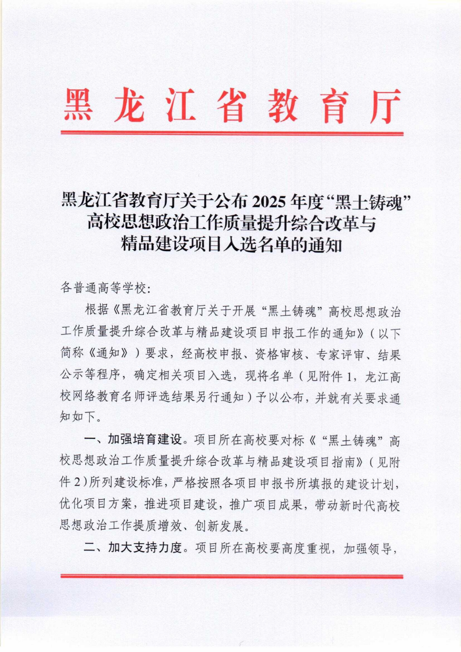 “黑土铸魂”高校思想政治工作质量提升综合改革与精品建设项目是黑龙江省教育厅为进一步贯彻落实党的二十大精神,深化高校思想政治工作改革创新,提升思想政治工作质量而设立的重要项目。该项目旨在通过综合改革和精品建设,打造一批具有示范引领作用的思政工作品牌,推动高校思想政治工作与教育教学、科研管理、社会服务等深度融合,培养担当民族复兴大任的时代新人。